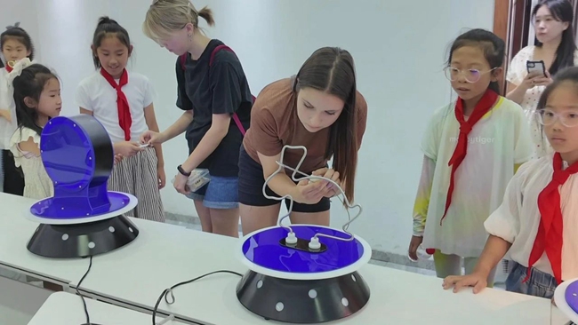 在旗苑社区科普体验馆,从“无形的力”到“磁悬浮”,再到“琴弦影像”,每一件展品都蕴含着丰富的科学原理,激发了青少年们强烈的好奇心和求知欲。在科技志愿者和俄语翻译的耐心讲解与配合下,中俄青少年不仅了解了这些科普仪器的使用方法,还亲手操作了DIY科普设备,如收音机科技手工制作等。在动手实践中,他们不仅学到了科学知识,更深刻体会到了科技与文化的融合之美。