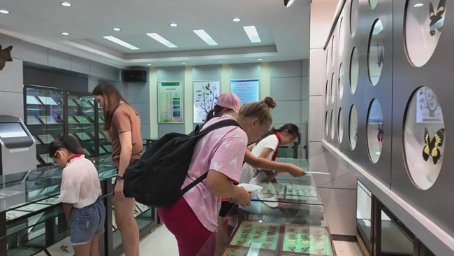 在海关生物标本馆,中俄青少年在讲解员的引导下,实地参观了昆虫标本、鸟类标本等,不仅了解了生物标本的制作方法和由来,还深刻认识到生物入侵对生态环境的危害,增强了环保意识。