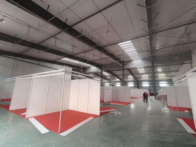 现场可见,地面上物料周转不停,展位框架搭建工作逐步展开,目前各项工作正在有序推进。