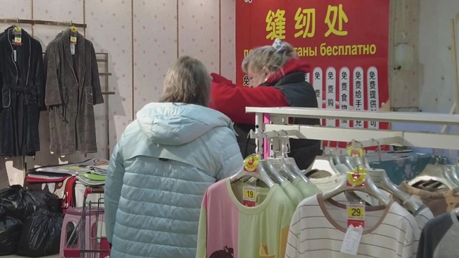 记者在火狐狸商城内看到,各服装用品专区人头攒动。货架上物美价廉的商品,吸引不少俄罗斯游客前来商城内选购心仪的商品。