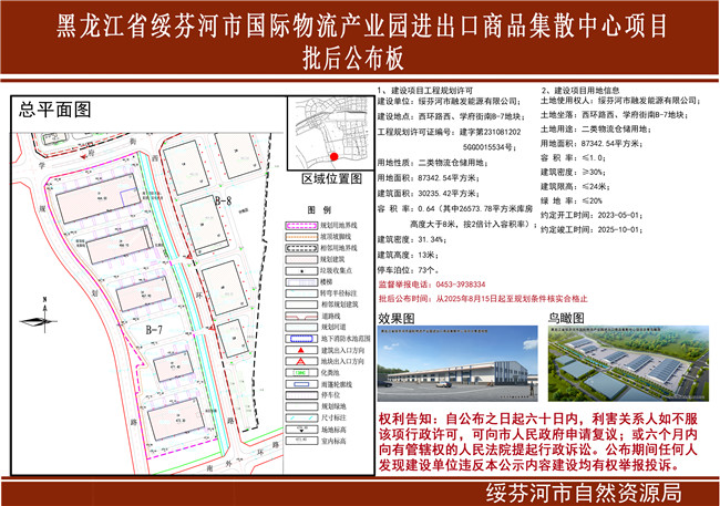 黑龙江省绥芬河市国际物流产业园进出口商品集散中心项目批后公示