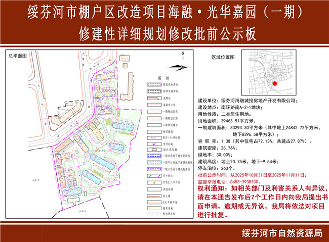 绥芬河市棚户区改造项目海融·光华嘉园(一期)修建性详细规划修改批前公示