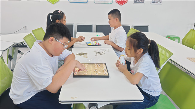 室外活动结束后,青少年们转战室内场地,开启益智游戏环节。现场准备了象棋、军棋、五子棋、拼图等多种益智游戏,青少年们根据自己的兴趣自主选择,或专注思考棋局策略,或齐心协力完成拼图。大家在轻松的氛围中锻炼了逻辑思维与专注力,同时也在交流互动中增进了彼此的友谊。