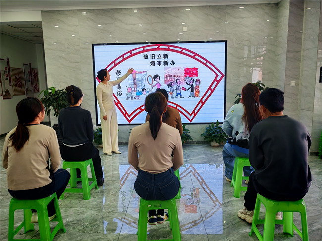 社区先以宣讲会凝聚思想共识,党员骨干、居民代表等齐聚一堂,直指彩礼偏高、宴席铺张等痛点。“侄女结婚要二十万彩礼,小两口刚结婚就背债”“丧事请两拨吹打班子,扰民又浪费”,代表们结合实例建言献策。